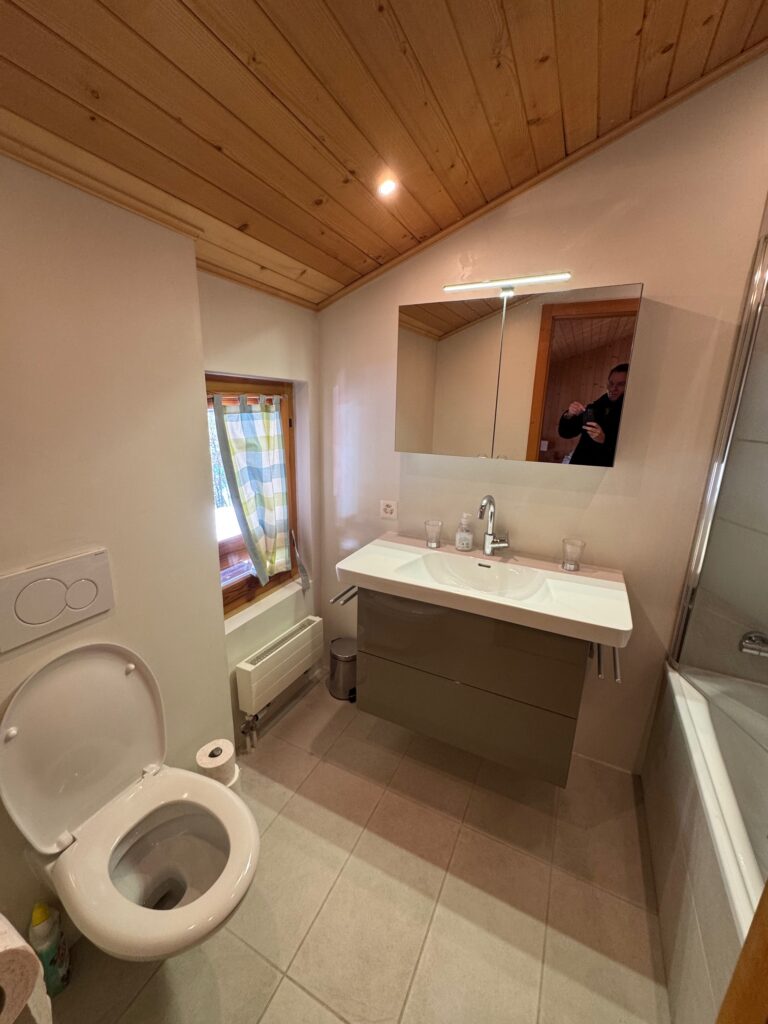 1 grande chambre avec armoire attenante à une salle de bain (lavabo et WC)